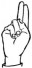 На ћирилици написано БОГДАН ТЕШАНОВИЋ састоји се из 15 слова [?]. Исписано ћириличном једноручном азбуком за глувонеме: